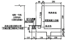 莘闵线地面段全长66. 75 m , 线路覆盖多种地下管线,有上水管、下水管、消防水管、电力电缆等。该工程施工时拟将管线迁至路基坡脚外。由于所处地段一侧为地铁一号线主变电站,另一侧为围墙,为了安置迁移的管线,路基挡墙设计为轻型的钢筋混凝土挡墙。因此,两侧各腾出1. 1 m 宽的空间,以分别放置迁移的水管及电力电缆。挡墙断面如图4 所示。