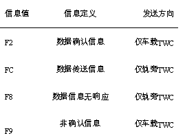 轨旁TWC 与车载TWC 之间的通信, 通过轨旁环线和车载天线完成, 信息内容遵循表1所示的信息头定义。