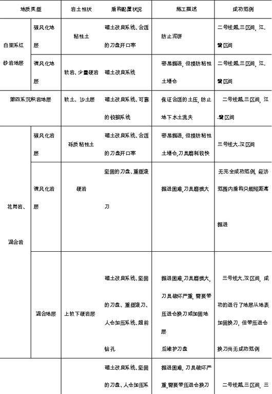 表1 列出了不同地质要求的盾构配置状况。