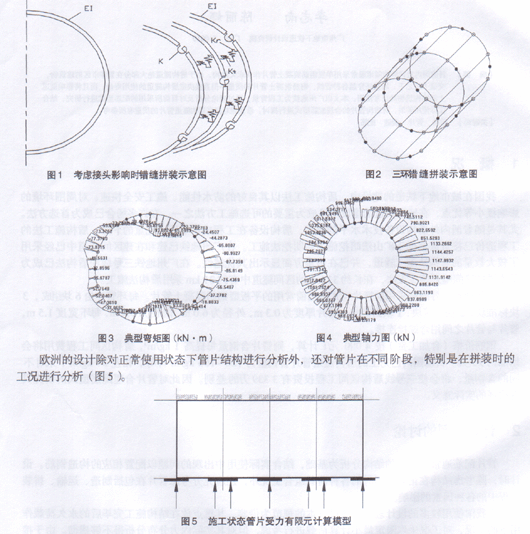 管片配筋通常以管片的结构分析为基础,结合实际使用中出现的问题以配置相应的构造钢筋。设计时.除考虑结构在正常使用时的各种荷载组合工矿外,还应充分考虑管片在包括制造、运输、拼装过程中的各种因素的影响。