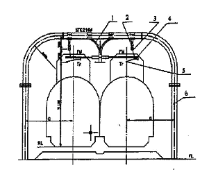 图1 整体链形结构断面图(图中:1 吊柱;2 绝缘子;3 承力索; 4 定位器;5 接触线;6 门型框架)