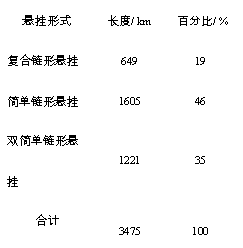 在日本,作为电化城轨重要组成部分的接触网悬挂形式分为两类: 复合链形结构和简单链形结构。日本的接触网复合链形悬挂和简单链形悬挂结构是1914 年东京与横滨之间修建电气化线路时分别从欧洲和美洲引进的。目前,日本铁路接触网已形成了复合链形悬挂和简单链形悬挂并存的状况。表1 是东京城轨的接触网悬挂形式统计。
