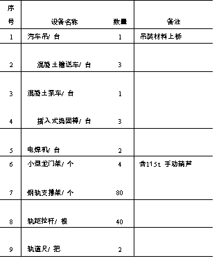 ③ 小型辅助机具加工包括道床施工所必须的钢轨支撑架、小型龙门架、桥上运轨小车、定型钢模板等。