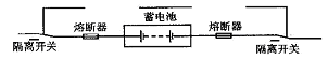 为了防止蓄电池熔断器的更换带电操作,蓄电池的隔离开关应该设置在蓄电池与熔断器的中间,以使两者隔离。ALSTOM 的设计没有考虑到这一细节, 将隔离开关设置在熔断器和蓄电池的外侧,如图2 所示。这样的设置将导致熔断器的更换带电操作。