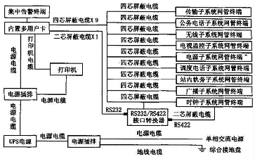 集中告警终端与各子系统维护监控终端的接口采用标准RS232 串行接口, 用于接收各子系统维护监控终端发送的告警信息, 并将应答信息反馈给各子系统。