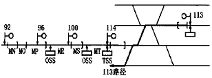信号机114 正常状态下显示红灯, 信号机100 也显示红灯。设置在信号机114 处的TSS 将会起到保护交叉点的作用。在信号114 显示红灯时, 信号100 是一个接近控制信号, 使列车能有效地减速。