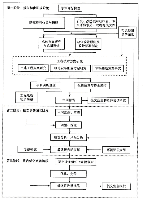 图1 深圳市轨道交通二期工程可行性研究工作程序(技术路线) 框图
