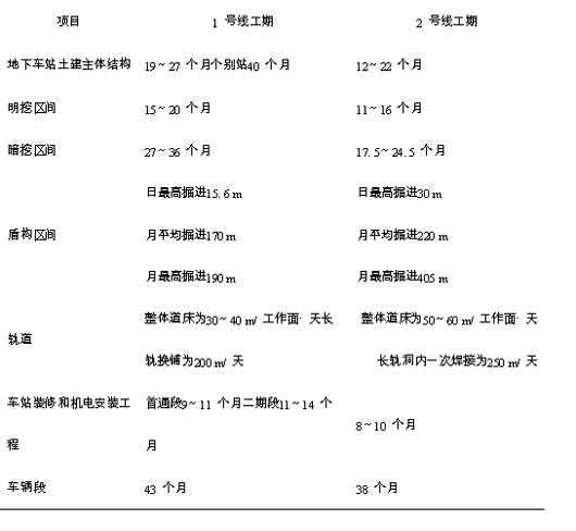 表1 广州地铁1 、2 号线主要工程进度比较