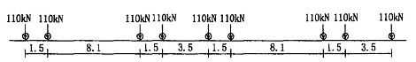 (3) 设计荷载轴重:110 kN (车辆设计荷载图示见图1)