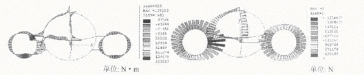 图6 联络通道结构弯矩(左侧) 和轴力(右侧) 图