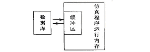 A TS 仿真培训系统使用SQL Server 作为数据库管理服务器。鉴于其响应速度难以满足实时仿真的要求,因此采用了数据缓冲的方法(见图5) ,将仿真时需要的数据事先加载到仿真终端,写回数据库的数据也在这里缓存。缓冲算法如下: ① 在内存中开辟数据缓冲区(仿真程序开始运行); ② 与数据库建立连接; ③ 查询所需数据,并存放在输入缓冲区; ④ 将结果存放在输出缓冲区,并写回数据库(仿真程序结束); ⑤ 删除缓冲区。