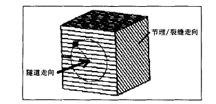 (1) 区域地质调查:区域地质调查重点进行区域岩体类别、节理、裂隙的调查,包括宽度、倾角、走向(图3) 。既有工程经验及试验均验证了节理、裂隙等软弱面对岩体的贯入度(PRev) 及刀具破岩效率有很大影响。
