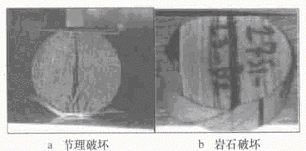 (1) 试验时没有区分破坏类型(节理/ 裂隙破坏,岩石破坏。见图4) ,剔除无代表性数据,导致统计基础不可靠;