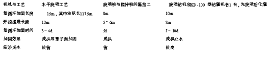 在现场多次试验的基础上, 比选了三种桩体加固方鉴于本工程地质条件的复杂性、结构端面型式的案。(1) 水平旋喷桩加固; (2) 间隔水平搅拌桩与水多样性、施工工艺难度极大、周围环境限制条件十分平旋喷桩加固; (3) 水平旋喷2化学灌浆加固。如图2 严格, 深圳市地铁总公司把本标段工程列为深圳市地所示。其优缺点比较见表1 。铁工程的重点和难点工程。为了保证工程得以顺利完