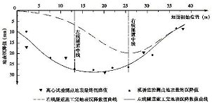 图11 SK3 + 355 断面地表沉降的数值模拟、离心试验和现场量测值比较