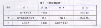 一般来说,采用土钉墙结构的前提之一是基坑周边环境对变形要求不太严格,因为土钉支护位移量较大,并且极易受施工因素的影响。为减少施工因素对边坡稳定的影响,在设计中对施工过程的控制应细化,如每小块土钉支护的初喷时间、土钉支护完成时间及上下层土钉的施工间隔等,并通过监测结果对具体参数进行调整。在设定土钉监测指标时,应以土钉的变化速率为主控目标,防止突变,对于其累积值则可适当放宽。