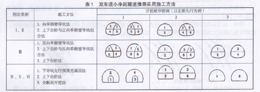 表1 双车道小净距隧道推荐采用施工方法