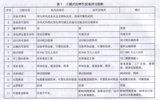 表1 三模式的牵引变电所比较表