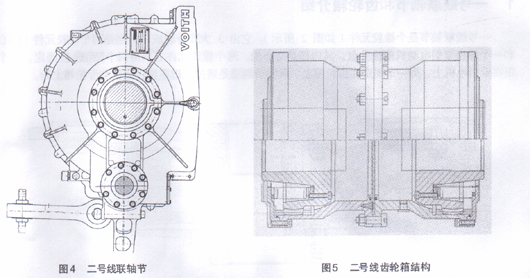二号线齿轮箱结构如图5所示。它的结构相对一号线齿轮箱要简单,所以价格便宜一些。