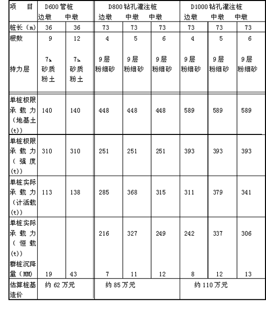桩基方案比选 表2