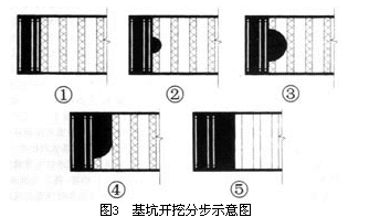 图3 基坑开挖分步示意图
