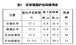 本主体结构基坑采用国家级工法“地下连续墙液压抓斗工法”施工的地下连续墙作为基坑围护结构,其规格及数量见表2。