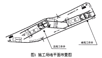 本工程的第一段隧道工程有南北2个工作井,作为上下行线盾构推进的始发井,施工场地位于Upper Paya Lebar路中间,呈狭长型,东西向之间的距离约为200m,而南北向之间的距离仅40m左右,2个井位间的间距为60m。场地布置如图1所示。