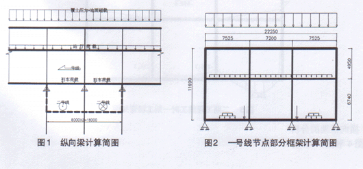 二号线施工时,节点处—号线底板下被掏空,纵向梁跨中截面简化为边墙及纵梁下支承的平面框架进行计算。