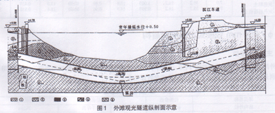图1 外滩观光隧道纵剖面示意