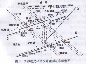 根据外滩观光平台的实际情况,分别布置沉降监测点(详见图6)。