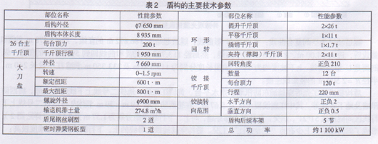 表2盾构的主要技术参数