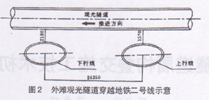 图2 外滩观光隧道穿越地铁二号线示意