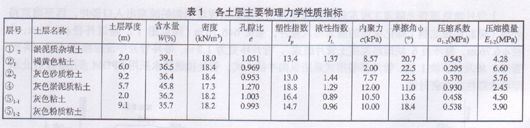 表1 各土层主要物理力学性质指标