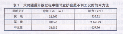 表1 大跨隧道开挖过程中临时支护在最不利工况时的内力值