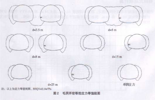 根据计算研究,双线净距隧道的围岩受力状态及稳定性与隧道净距和围岩状态有关系切的关系一般有以下特征: