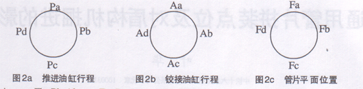 所以应使管片与推进千斤顶接触平面尽量重合,这可以通过选择管片的拼装位置来实现。在选择管片位置时,有两个参数需要考虑,一个是盾尾间隙的保证;另一个是管片平面走向趋势。管片趋势相关的参数有:推进汕缸行程,铰接油缸行程,管片平面位置,如图2。
