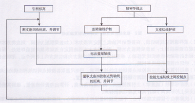 (6)根据支座法线上两控制点到墩帽法线的距离,用支距法微调支座法线,如此反复进行平面和高程的调整,使中心坐标误差控制在Mp<±1.5mm,支距误差控制在材Ms<±mm,标高差Mh<±1mm。