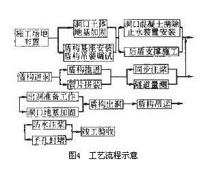 应根据不同的工程地质和水文地质条件、地面环境、隧道尺寸、工期、造价和经验合理地选用盾构机的类型。盾构机应能适应多变的地层,既能在软弱和多变的地层中掘进,又能在中硬岩层中开挖。根据各种盾构机对地层的适应性,建议采用加泥式土压平衡盾构机。施工工序及施工工艺流程如图4所示。