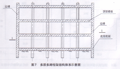 如前所述,奉工法适用于多层多跨框架结构体系的施工,其一般结构体系见图7、图8。