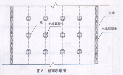 由于土体开挖均在混凝土框架结构内部进行,给开挖土体提供了很大自由度。实际施工时可根据施工组织需要,安排人工开挖或机械开挖均可。