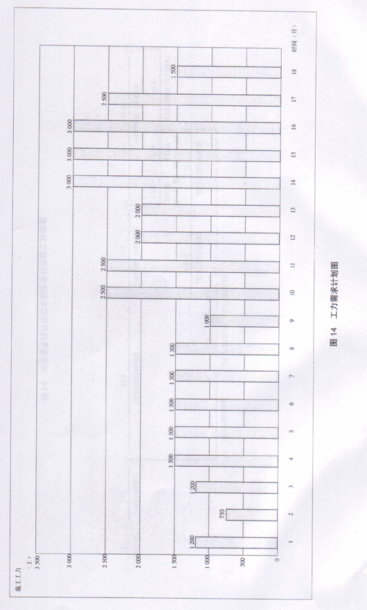 施工总工力为33650工,详见工力需求计划图,见图15。