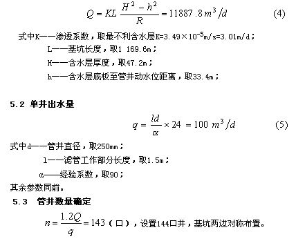 从上面的分析可见,对上部承压水层,在开挖至坑底之前需采取降水措施。