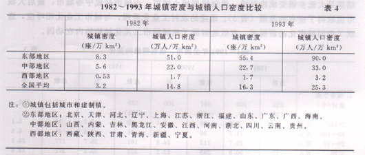 1982 1993年城镇密度与城镇人口密度比较 表4