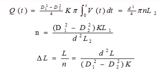 假设在一环中,总注浆量为Q(t),盾壳外径为D1,管片外径为D2,管片长度为L1,注浆泵活塞外径为d,注浆泵活塞长度为L2,推进速度为V(t),推进时间为t,注浆次数为n,注浆量比例设定参数为K,注浆一次的行程为<L,则有:
