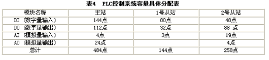 表4 PLC控制系统容量具体分配表