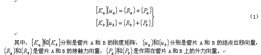 接触问题中,最重要的区域是接触部分。对于由管片A和B组成的接触问题,为了分析的方便,将他们分离成两个独立的物体,如图1所示。我们可以写出它们各自的有限元基本方程。即: