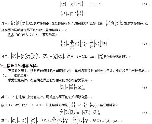 就很容易解决了。这里采取的方法是通过接触点对之间的位移相容关系求得接触力。