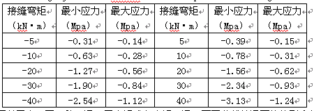 从计算结果可以看出,正负弯矩情况下接缝面的法向接触压力见表4。