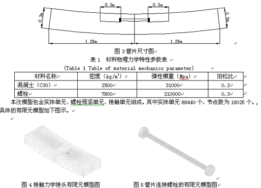 基于上述假定,检查预制管片,可以看出。钢筋混凝土在小变位情况下为线弹性材料满足第一条假设。第二条用来对接触摩擦进行滑动判断的。由于预制管片是连续体因此接触面是连续的和平滑的也可以满足。除此之外,假设中没有对接触面的形状进行描述等等。