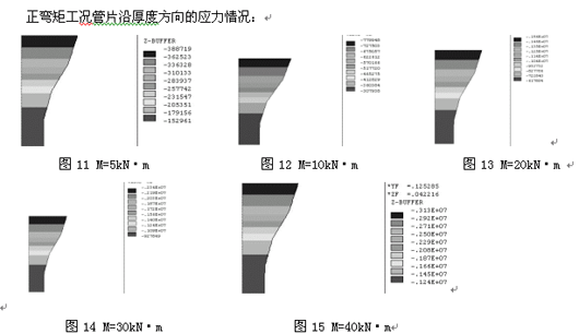 不同弯矩值下的接缝位移和刚度见表2和表3所示。具体的应力大小和分布形式见图6~图15。